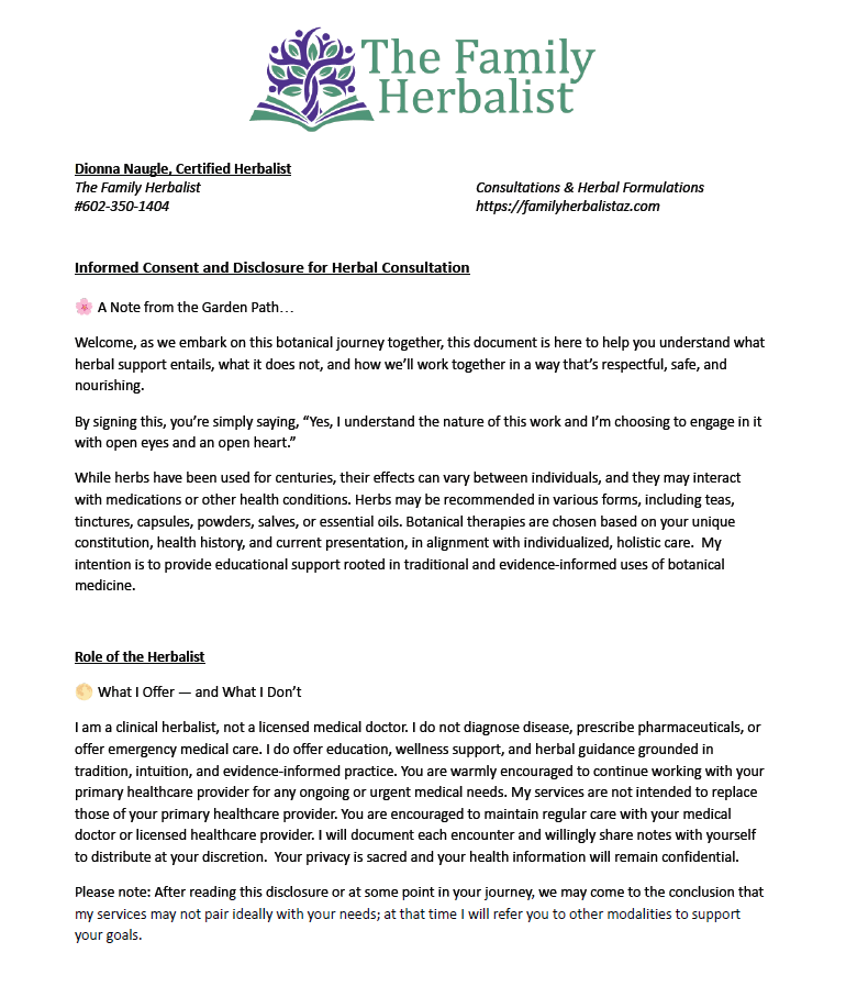 The Family Herbalist Consent Form